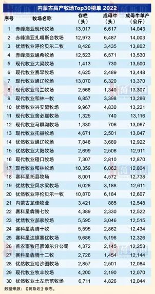 除此之外,《內蒙古奶業產業地圖2023》還以表格的形式呈現了內蒙古乳品加工TOP5企業、內蒙古主要TOP9牧業集團以及內蒙古高產牧場TOP30榜單。