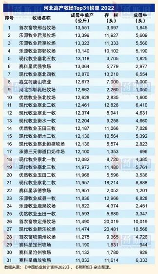 除此之外,《河北奶業產業地圖2023》還以表格形式呈現了河北Top8牧場(集團)及河北高產牧場Top31榜單。