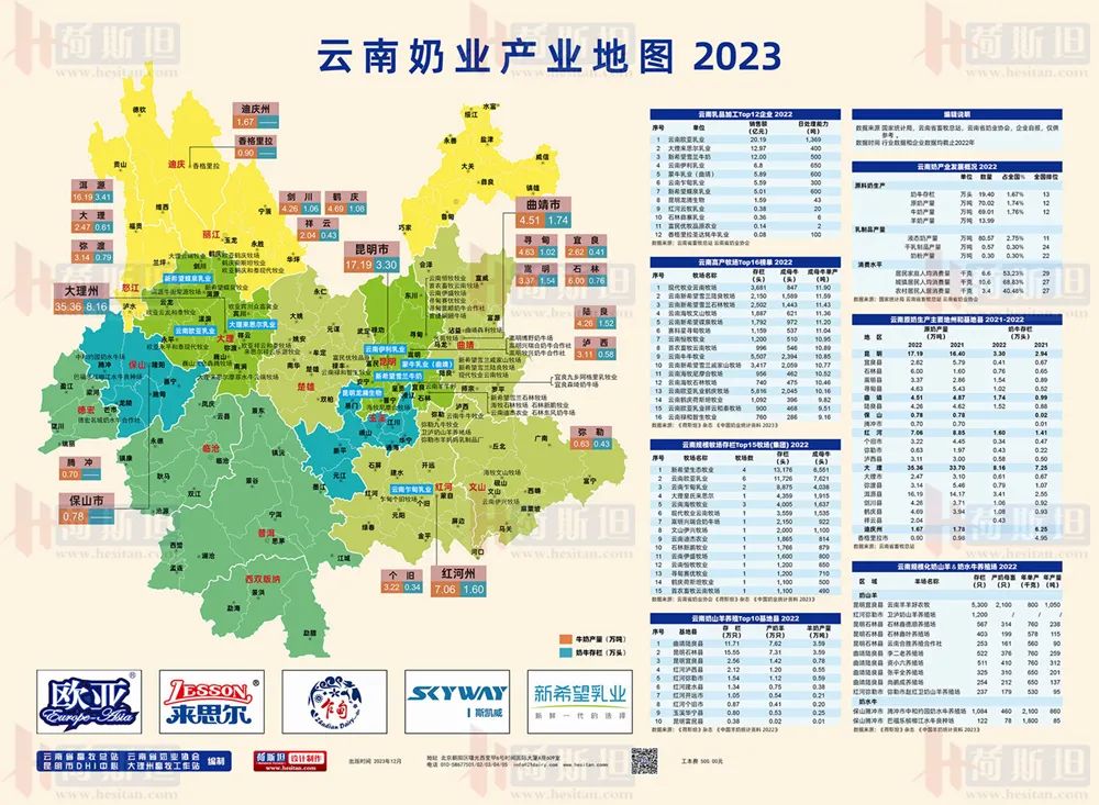 《云南奶業產業地圖2023》由歐亞乳業、來思爾乳業、乍甸乳業、斯凱威、新希望乳業贊助支持
