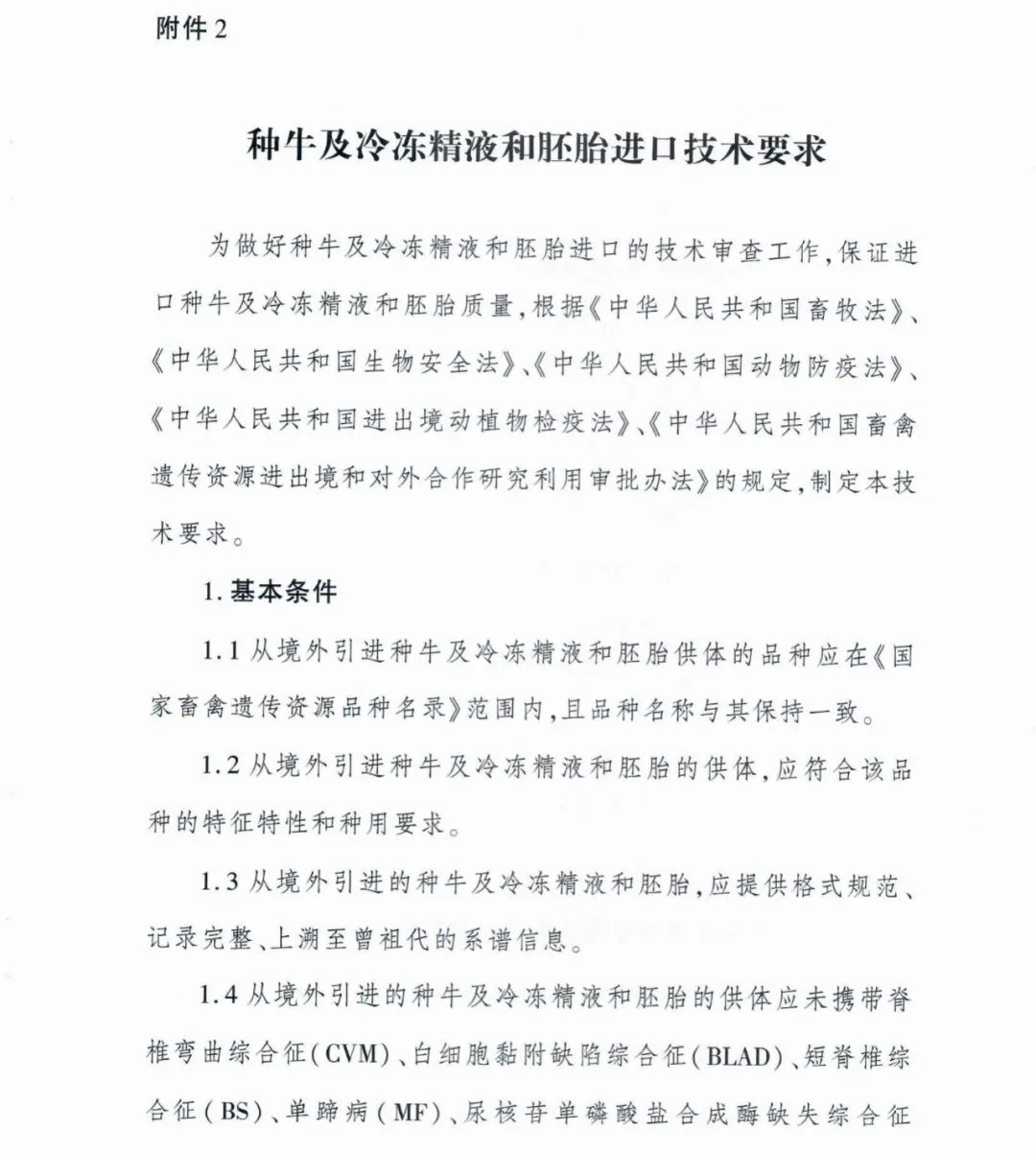 農業農村部發布《種牛及冷凍精液和胚胎進口技術要求》,自6月1日起執行