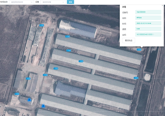 車輛使用車載監控模塊,并實時向平臺上傳車輛的位置信息,實現了車輛每日運行軌跡、運行時間段的記錄。對牧場每日鏟車、飼喂車、清糞車等一系列車輛的使用情況,均記錄下來,以便牧場管理人員能夠清楚的知道牧場車輛的運行情況。